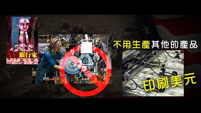 背後操控美國人的銀行家(Freemason)發現,其實美國可以不用生産任何産品,只生産一樣東西就可以致富,往後的生活便過得比世上所有人都好!這就是印刷美元。背後操控美國的銀行家可以用生産美元來過好日子,就此意義上説,背後操控美國的銀行家,最基本的生存方式就是金融生存。
